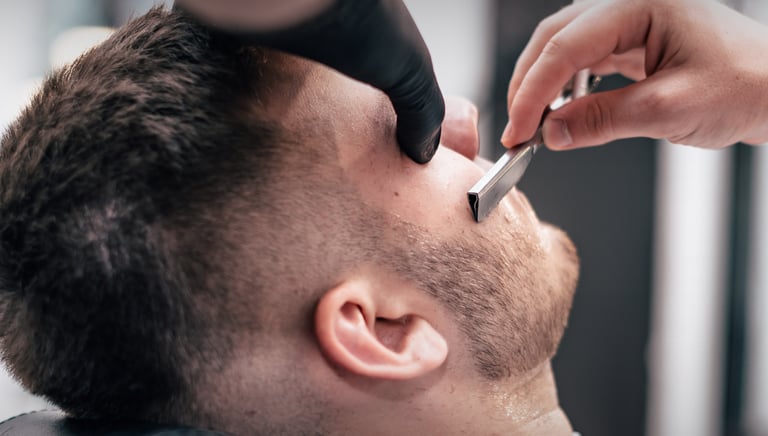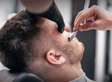 Nassrasur & heiße Kompresse: Traditionelles Barbier-Erlebnis – entspannend und gründlich.